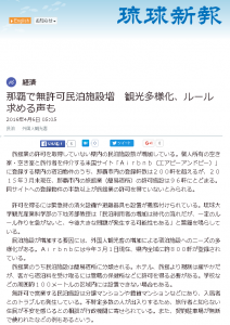 沖縄でも、AirBNBを利用した民泊については物議を交わしています。地元の新聞にも取り上げられていました。