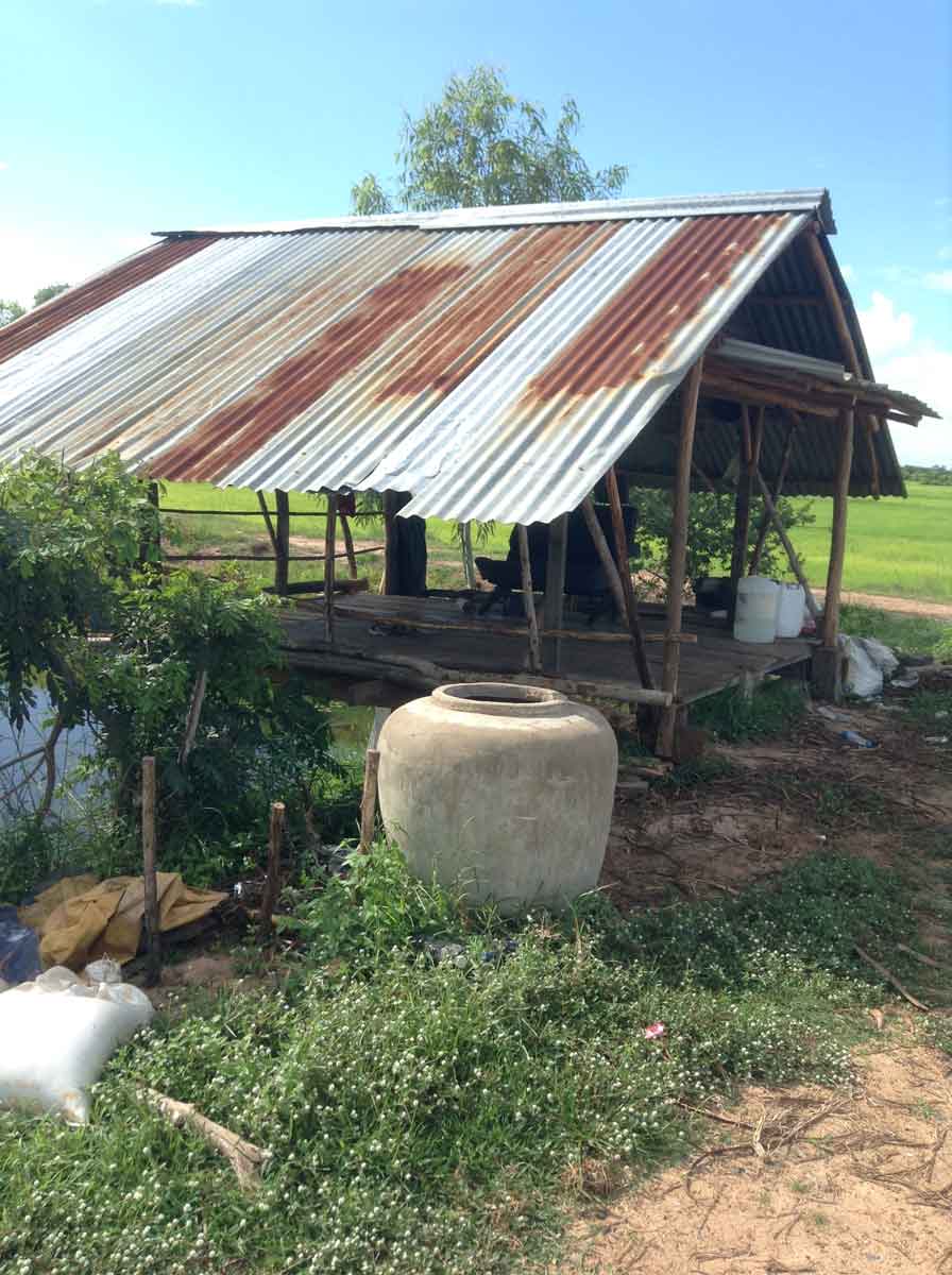 村から仕事場である田んぼまでは数Km離れているので、食事の度に村までもどっている時間がもったえないとのことで、橋の横の運河の上に小屋を作り、そこで、料理を作り昼飯を食べ、休息しているそうです。