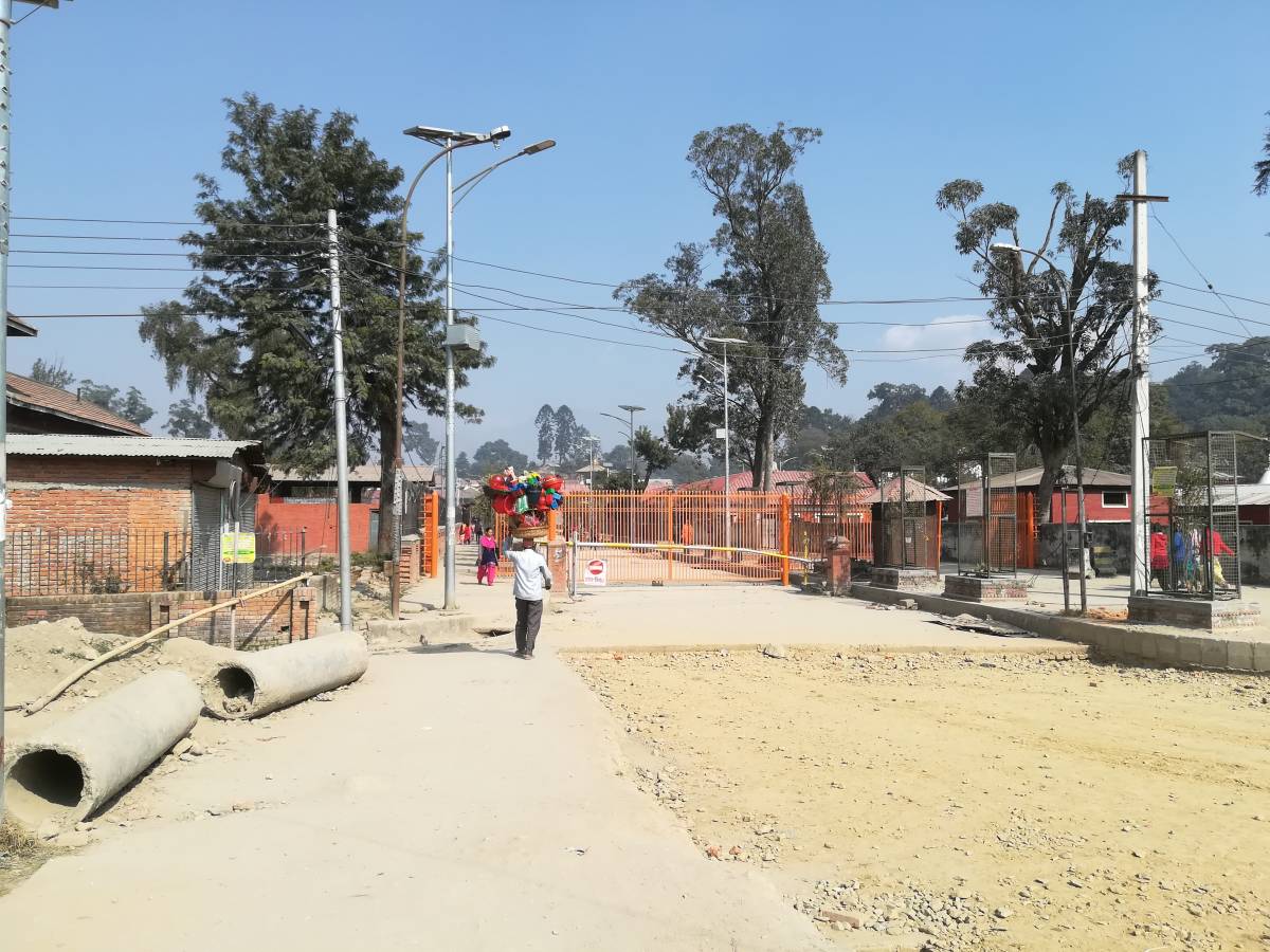 丘を登ると、こじんまりとした寺院がいくつかあり、中には、大地震で崩壊した寺院もあり、補修工事を行っているものありました。
