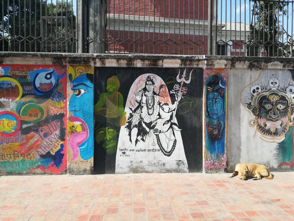 この寺院の塀にかかれていた壁絵がユニークでした。