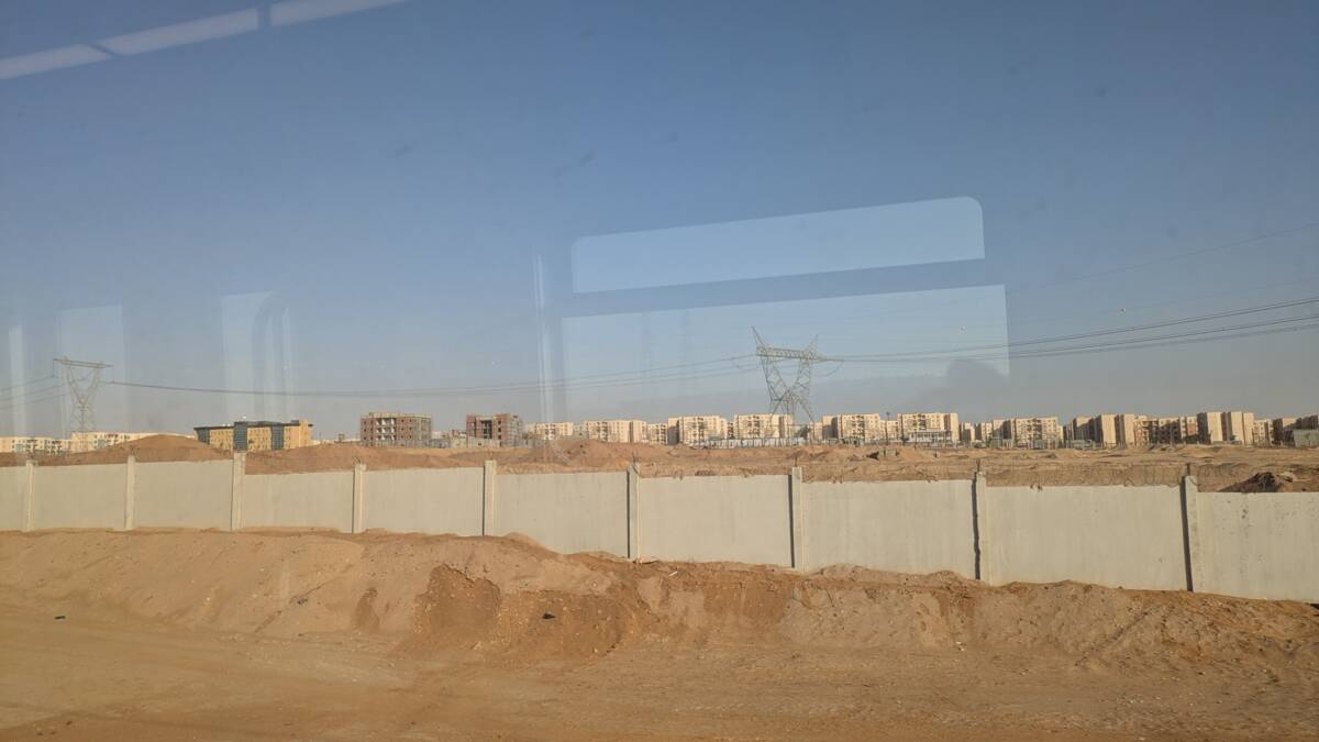 窓から見える景色はまるで砂漠。遠くの方に人工的に作られた街が見えます。人が住んでいるのかどうか分からない、まだ、建設途中と思われる建物も多く見られました。