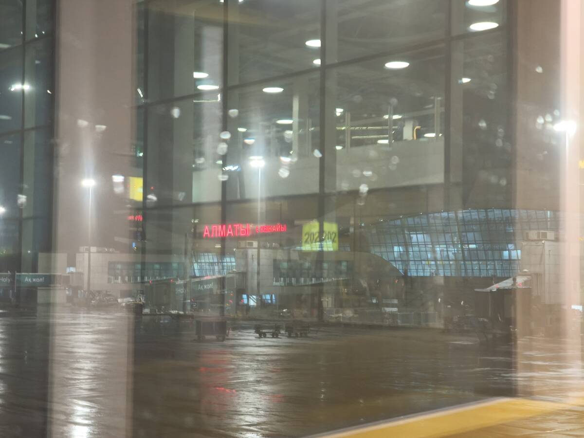 ところが当日は、出発が30分以上遅れ、アルマトイ到着も約30分遅延。現地時刻で23:15頃、やっと空港に到着しました。