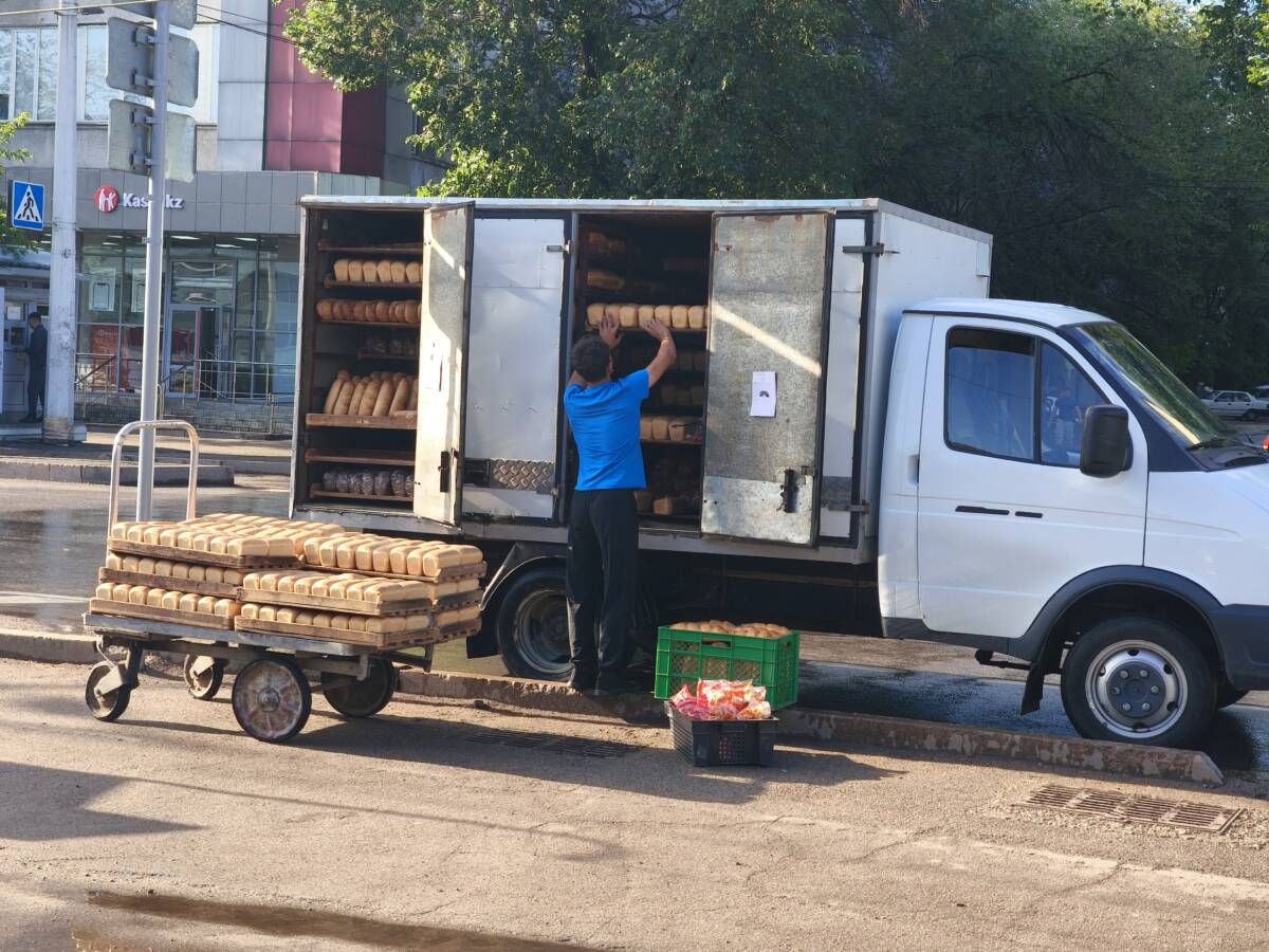 早朝7時前に、ゼレニ・バザールに到着しました。市場の近くでは、市場内で販売するであろう食パンをトラックから、リアカーに詰め替えているところを目撃しました。