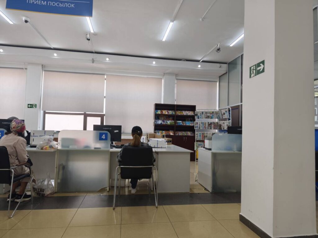 カザフスタンでは、小包などは郵便局で受け取る仕組みになっているようです。受取りのコーナーでは人が多く混雑していましたが、郵便・小包を送り出す方は一人待つだけで、すぐに順番が来ました。