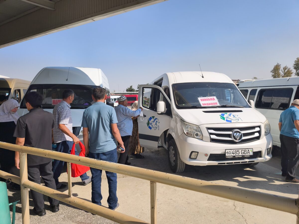 アンディジャンのバスターミナルには、オシュへの国境まで、マルシルートカ、乗り合いタクシーが利用できます。ただし、時間帯によっては、マルシルートカはなく、乗り合いタクシーのみとなります。乗り合いタクシーの値段は 50,000 UZS で4人集まれば出発。