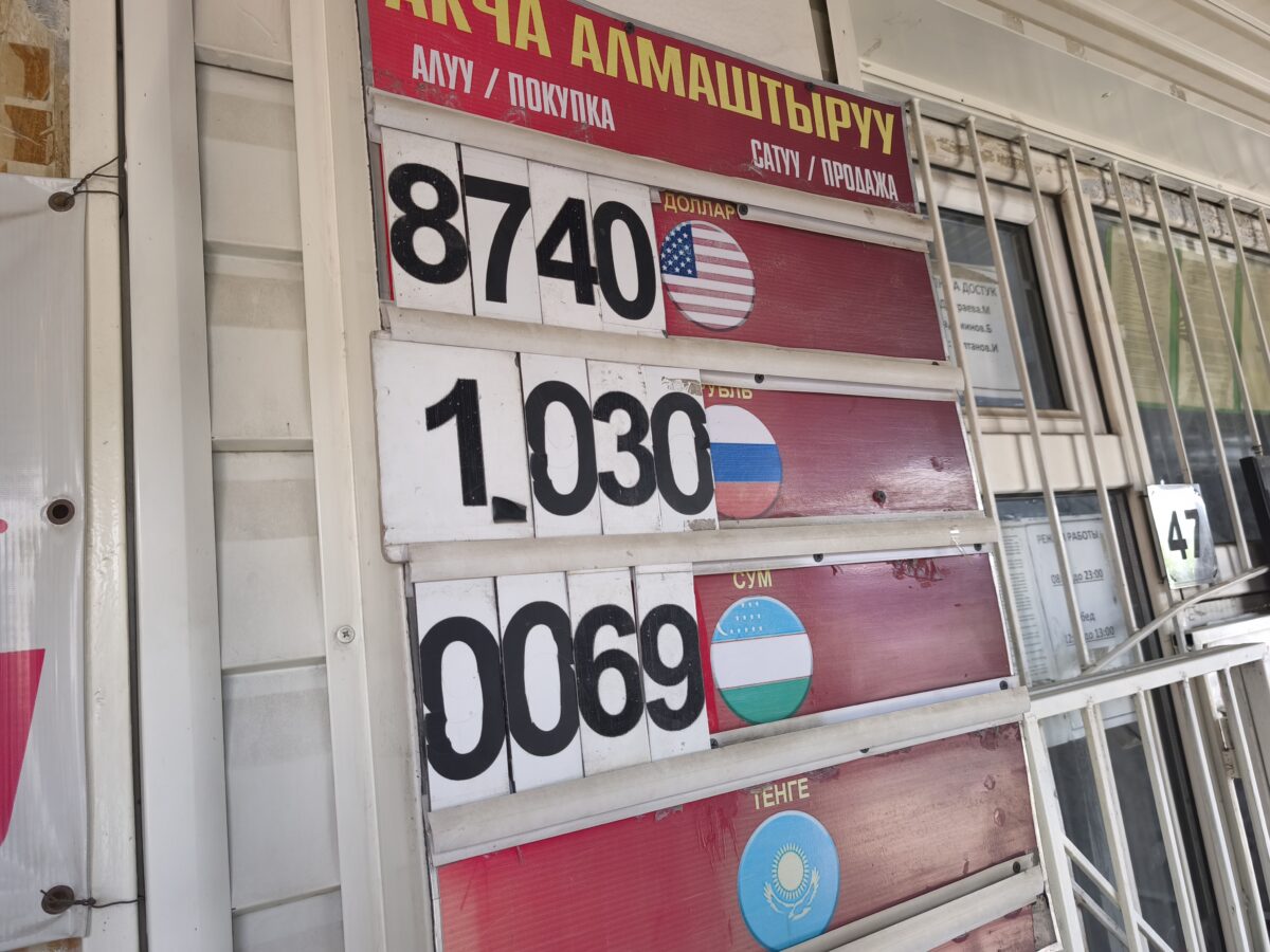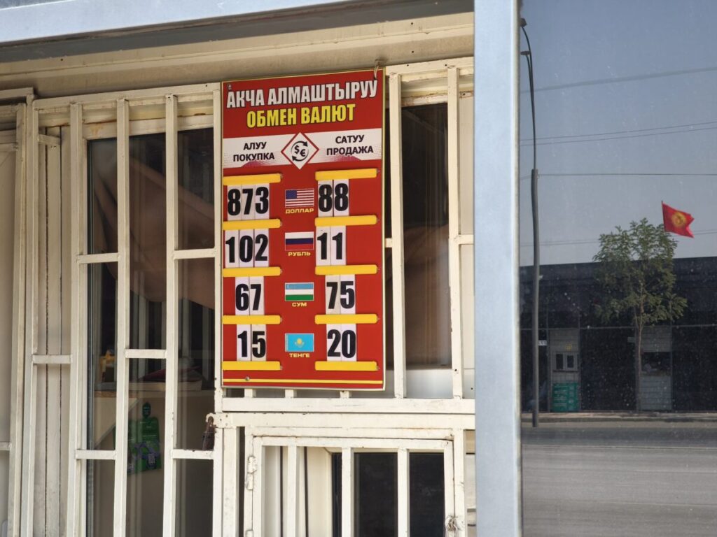 キルギスに入国したあと、両替、SIMなどを販売する店がたくさん軒を構えています。ただし、日本円での両替はできません。
