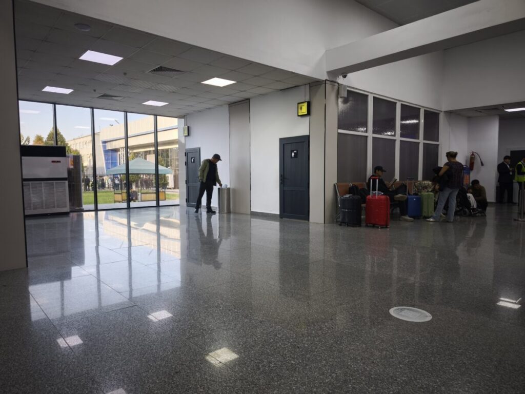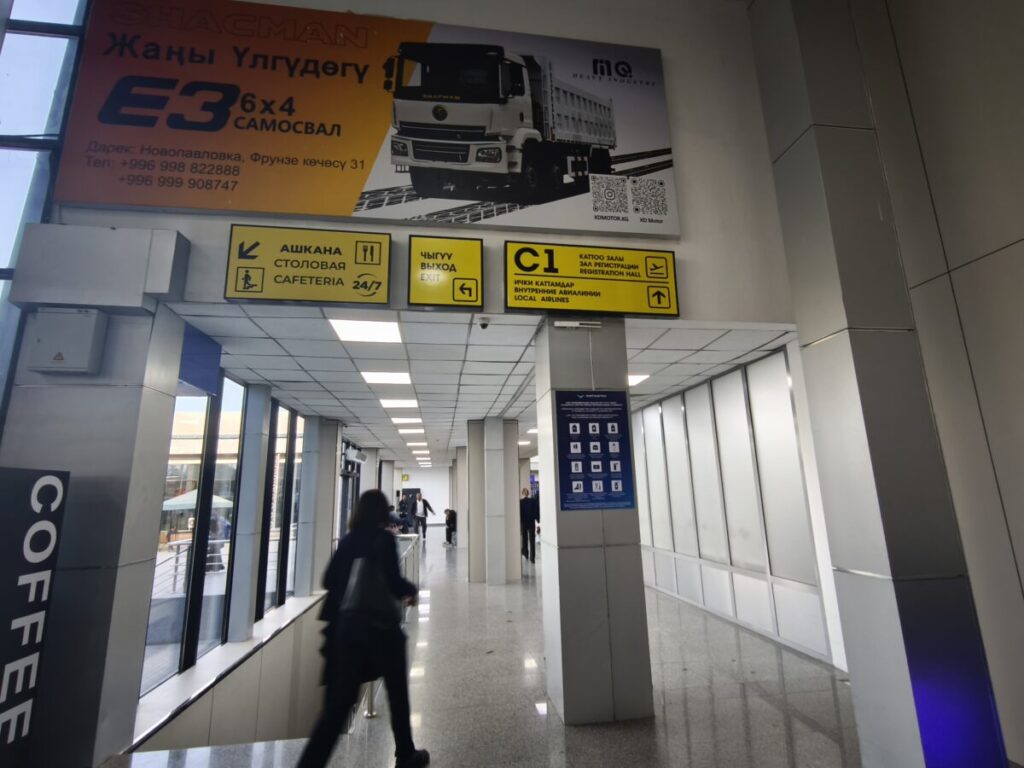 オシュ市内の ECO HOSTEL から、Yandexを利用して 436 KGS (738円) で30分ほどで、オシュ国際空港まで移動しました。