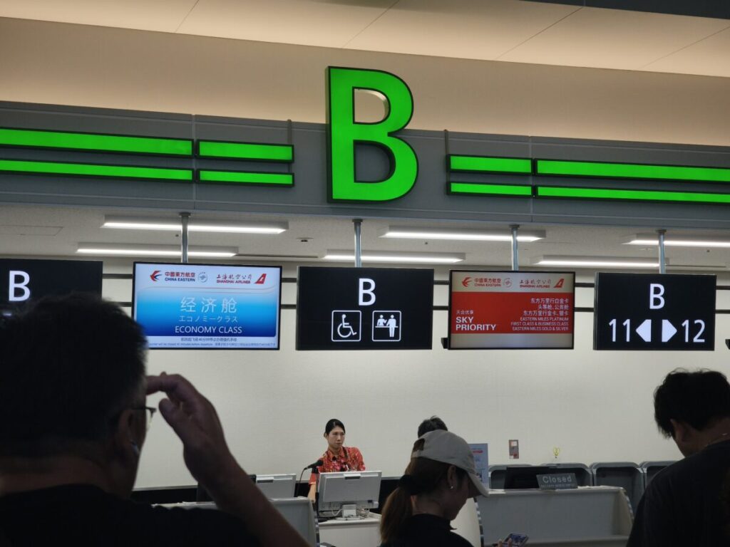 予定出発時刻の2時間前の14:30から、チェックイン受付開始と掲示板には表示されていましたが、実際には14:20頃から手続きがスターとしました。すでに、30名程がカウンター前に並んでいる状態でした。