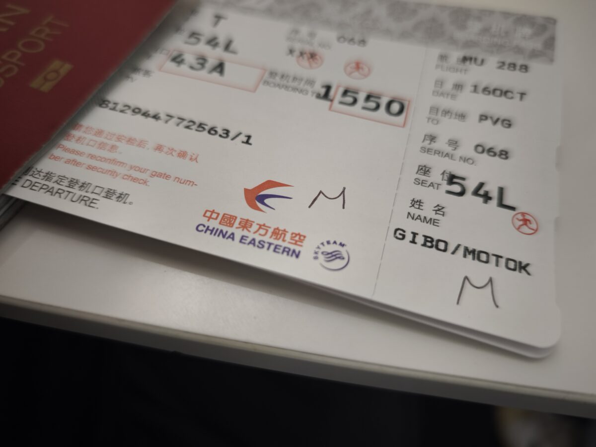 2025年10月16日に、沖縄からカザフスタンのアルマトイへ行く際に、経由地である上海まで、 MU288便 沖縄->上海 を利用しました。