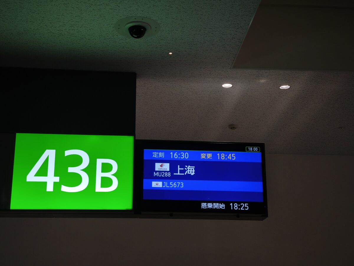 保安検査、出国手続きが終わり、出発ロビーで搭乗を待っていると、出発が遅れるとのアナウンスがありました。同時に、航空券購入元のトリップドットコムから同じ連絡が数回ありました。理由は到着機材の遅れとのことで、到着機材がどうして遅れたかの踏み込んだ説明はありませんでした。