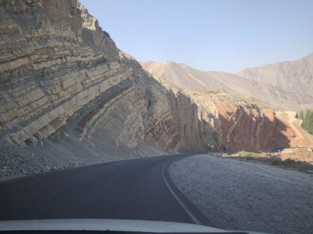走り出してすぐ感じたのですが、タジキスタンの山道は“クネクネ+岩山”の世界。
