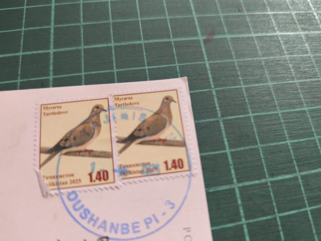 届いた絵葉書に貼られていた切手は 2.8 TJS (約47円)分の切手しか貼られていませんでした。