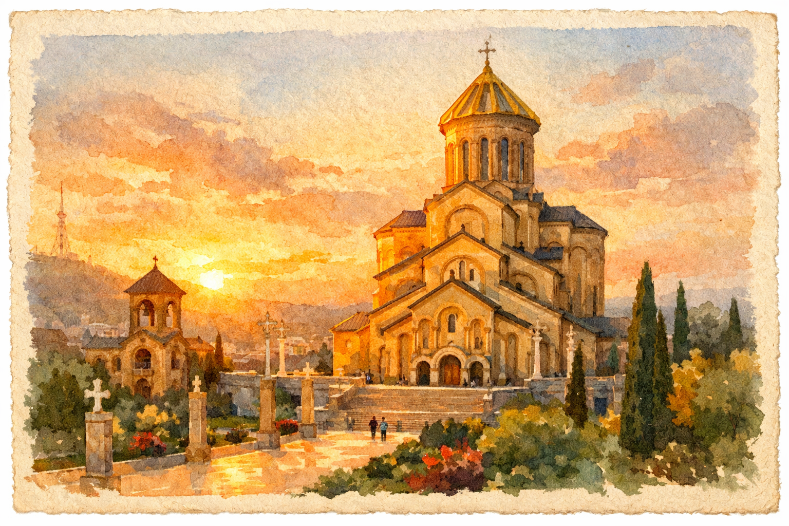 西日が当たるときが最も美しいとのこと。ジョージア大正教の最も大きな教会。撮影OK。